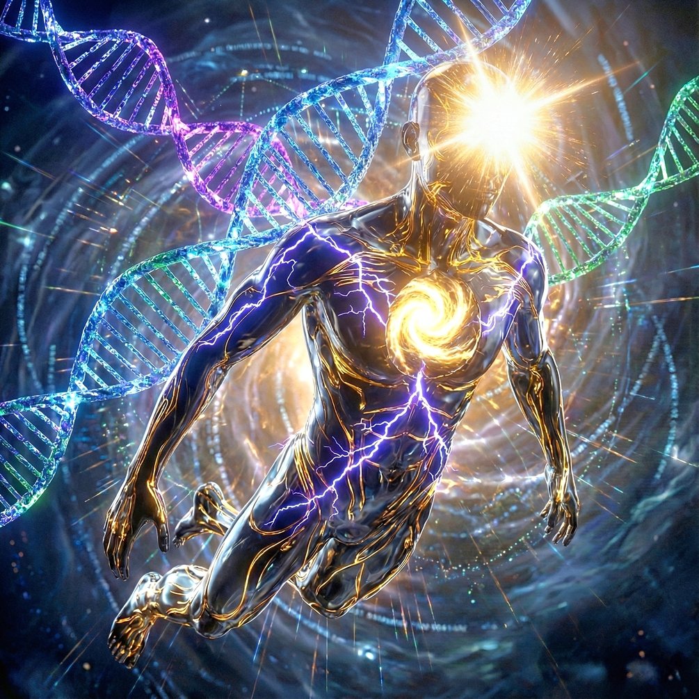 Modern science confirms that 98% of your DNA is "non-coding" (Junk DNA). Your brain filters out 99.9% of the visible light spectrum to keep you sane. Your energy system is throttled by ancient evolutionary governors designed to keep you average, compliant, and energy-efficient for a primitive world that no longer exists.